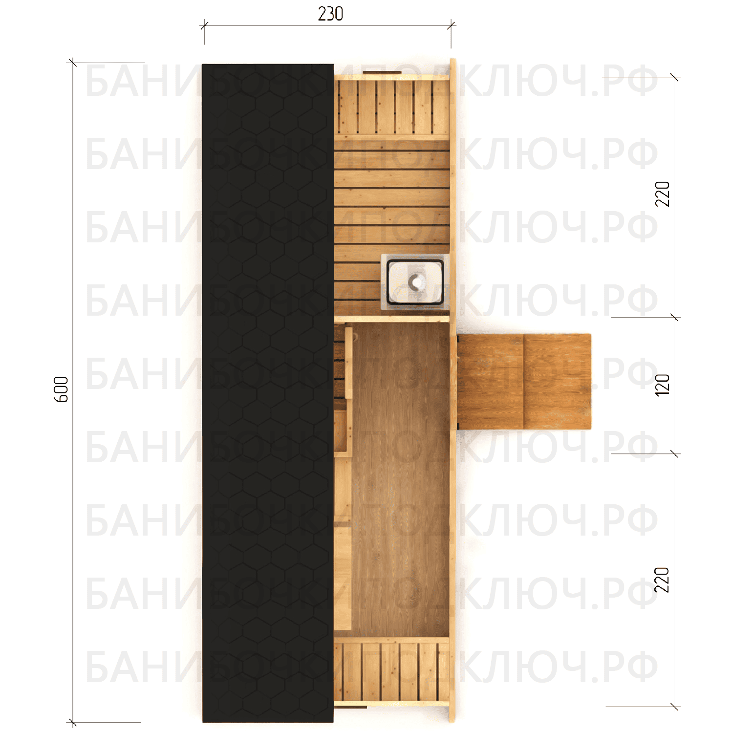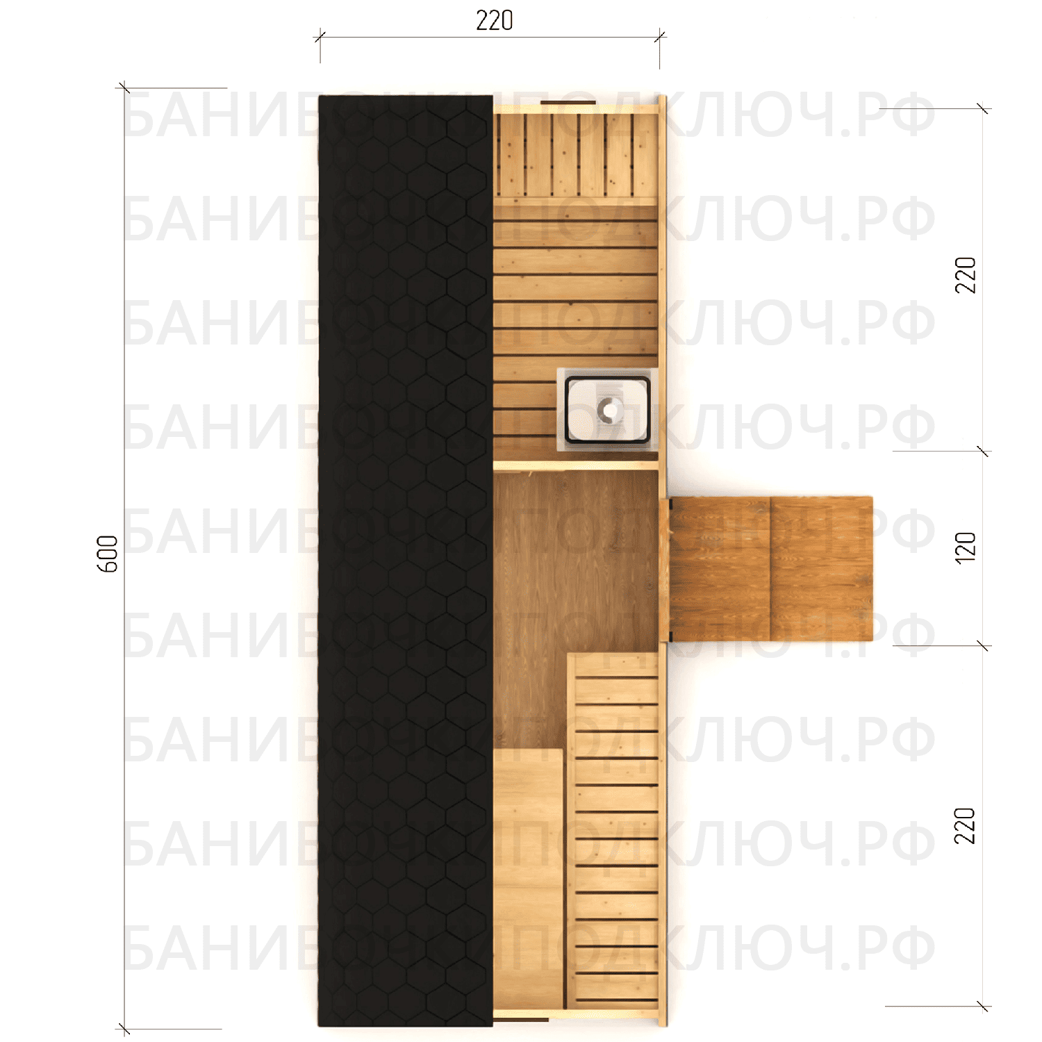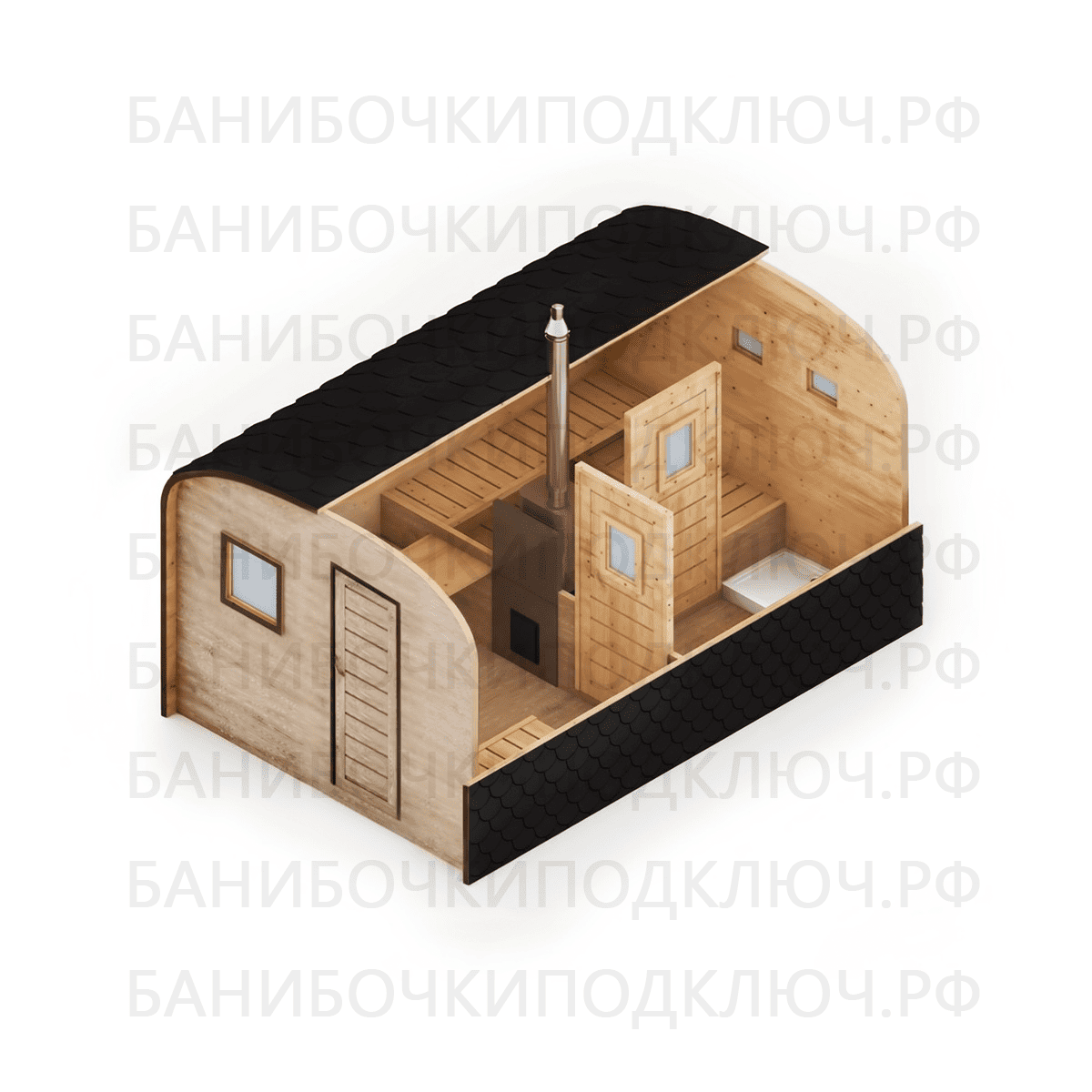 Баня парус 6 x 2,3 м в комплектации "ЛЮКС"