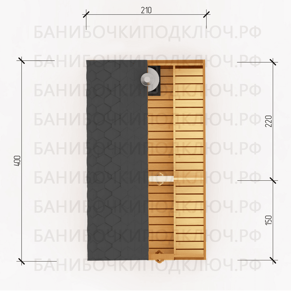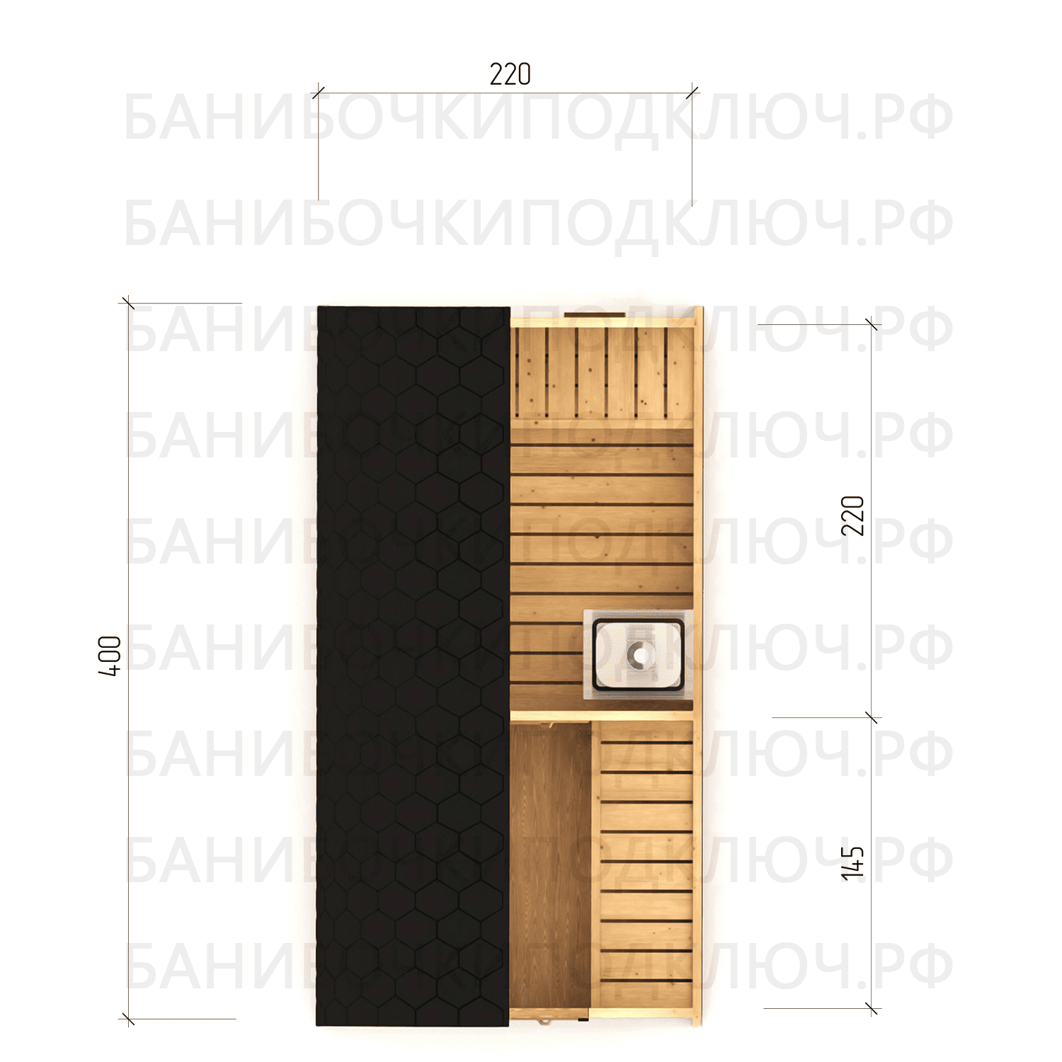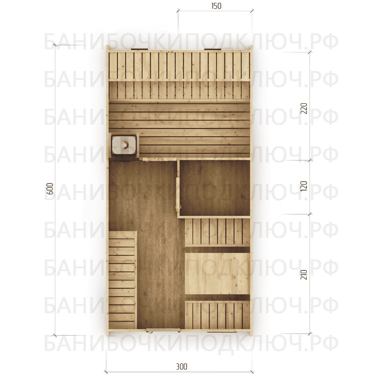 парилка - 220 см, мойка - 110 см, предбанник - 130 см