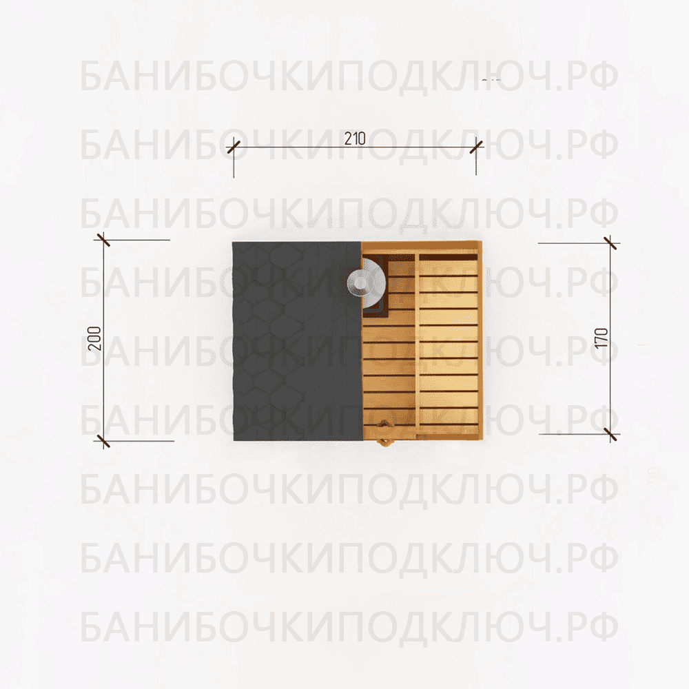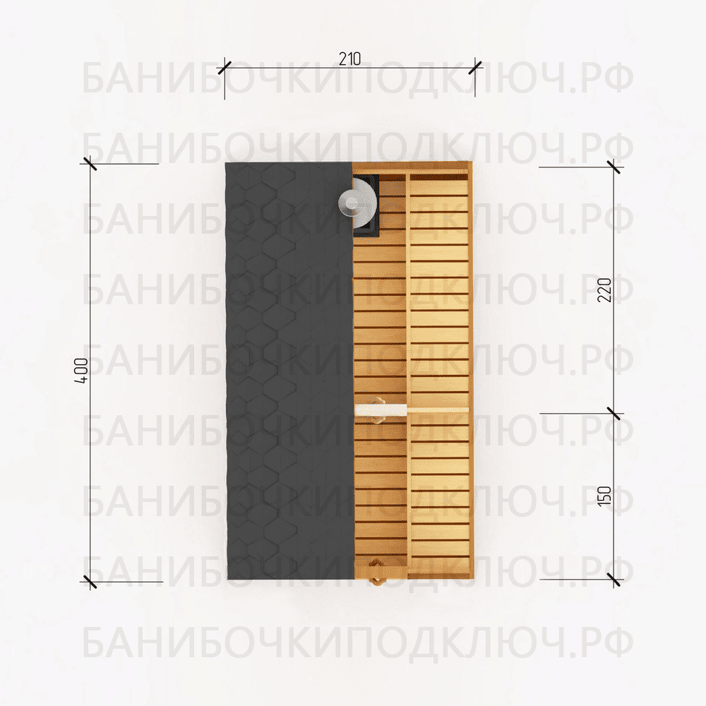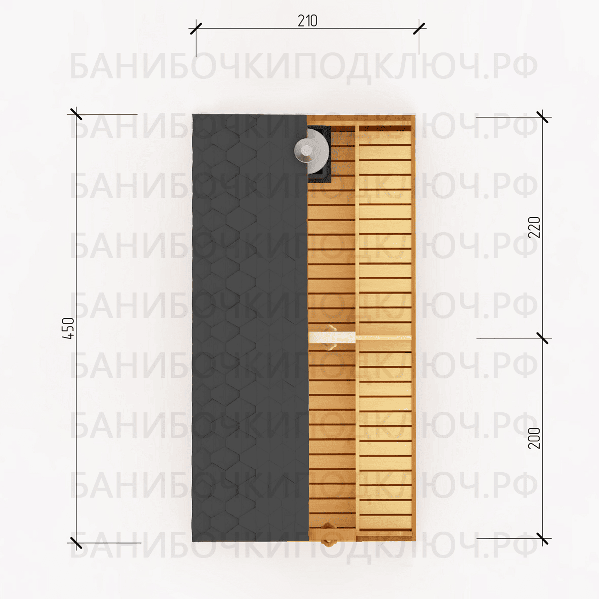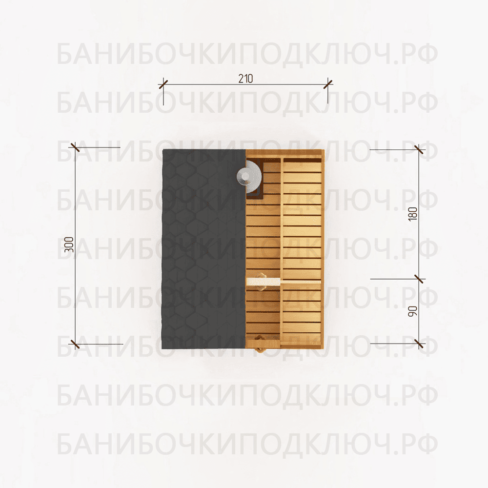 парилка - 220 см, мойка - 130 см, предбанник - 210 см