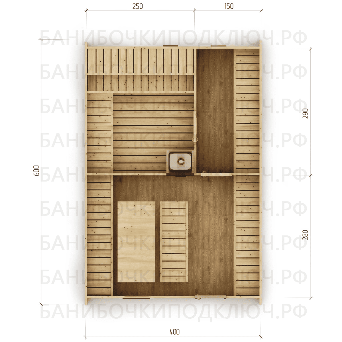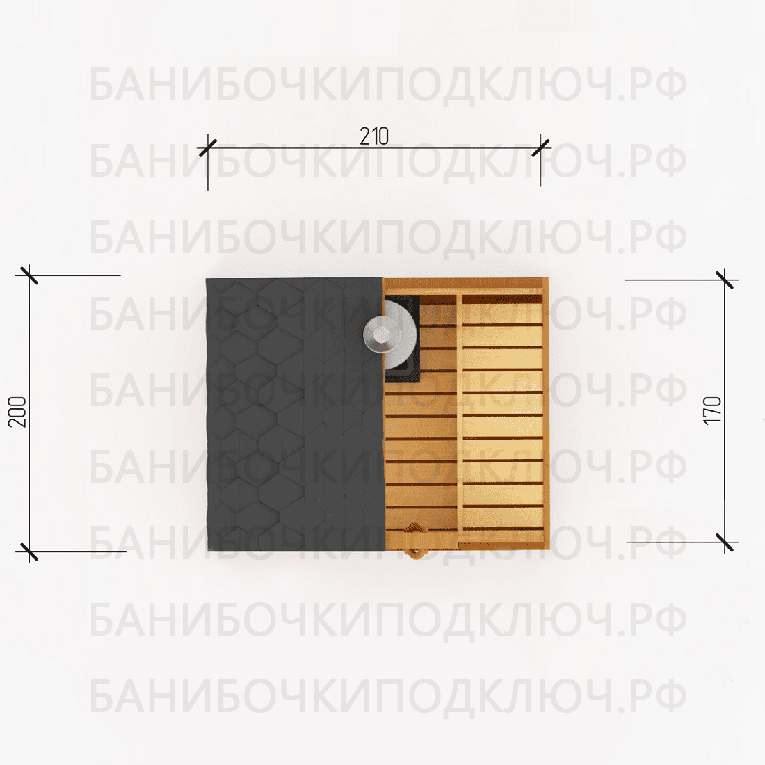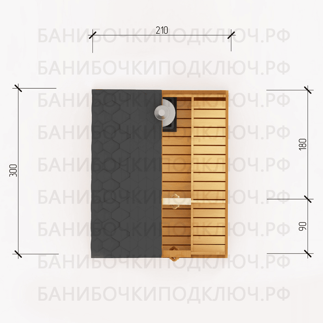 парилка - 220 см, мойка - 130 см, предбанник - 210 см