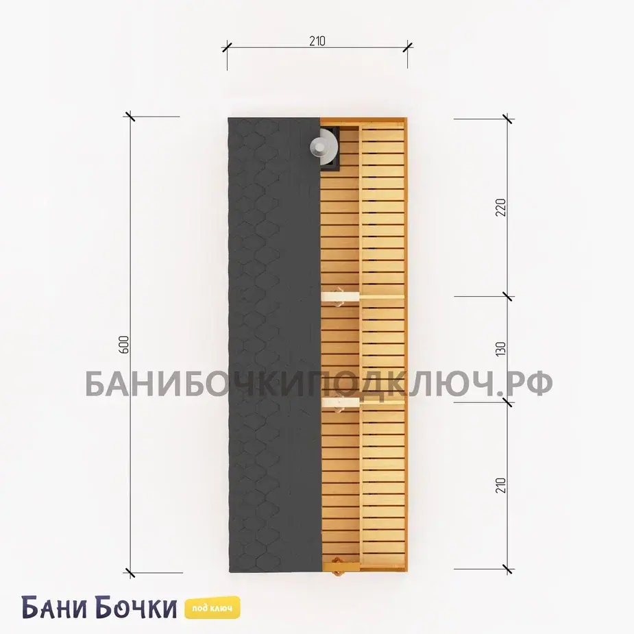 парилка - 220 см, мойка - 130 см, предбанник - 210 см