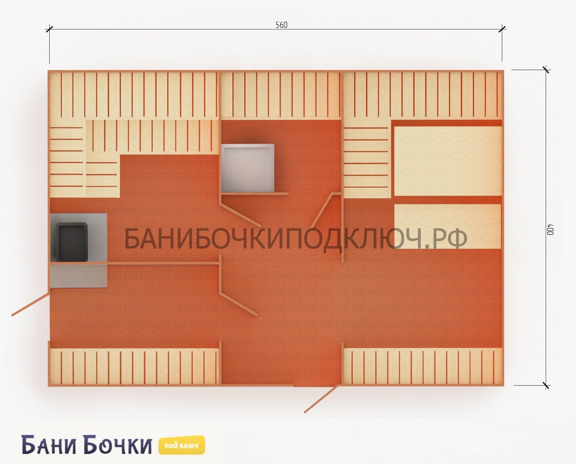 парилка - 220 см, мойка - 110 см, предбанник - 130 см